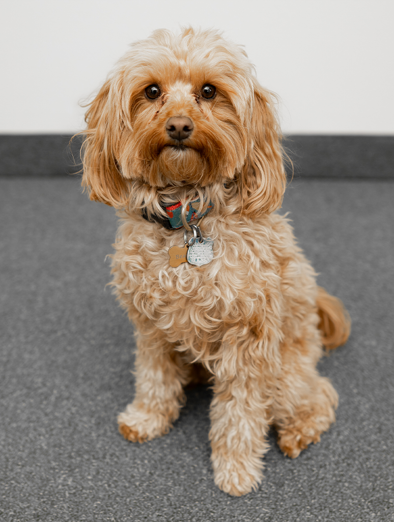 Our therapy dog, Beatrice, is a micro-mini Goldendoodle who joined our team in 2021. Bea provides comfort and support to families upon request at arrangement meetings, visitations, and funerals. Her special training and unique brand of affection soothe those who are going through a difficult time. When she’s not at the funeral home, Bea enjoys going outside and riding in the car.